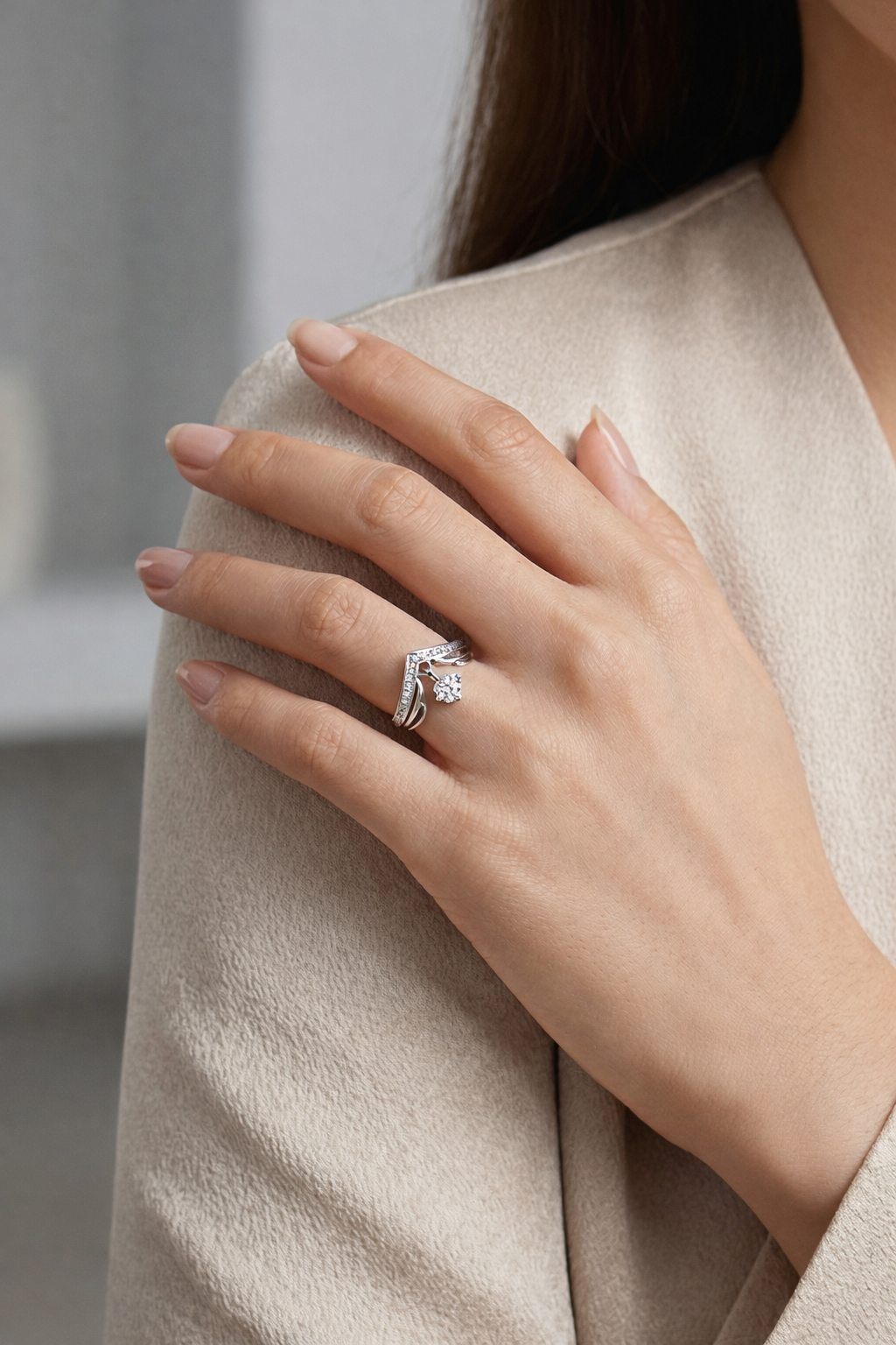 • Design: Chevron / V-Shape with Dangling Charm