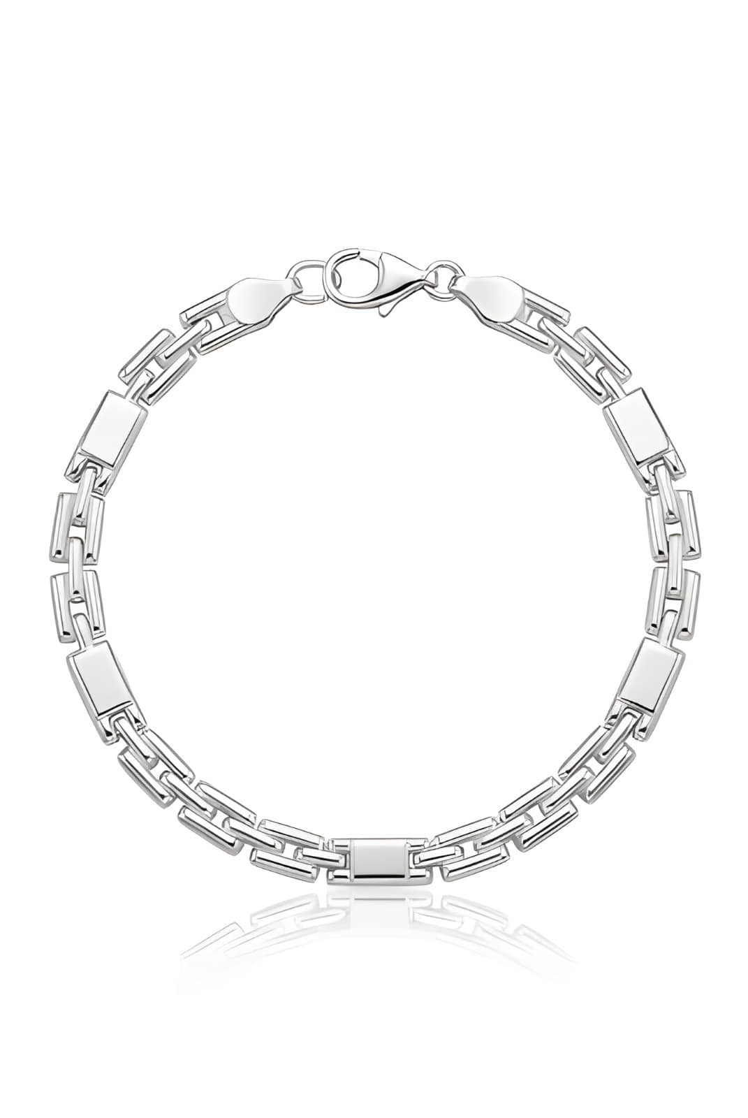 Update your wrist stack with this sleek and contemporary silver bracelet. Crafted from 925 Italian silver, it features a rhythmic, alternating design of polished solid rectangular bars connected by open geometric links. This sophisticated “bar and link” pattern offers a modern twist on classic chain styles. With a slender width of 0.4cm and a length of 19cm, it sits elegantly on the wrist. Weighing 6.3 grams, it provides a comfortable, lightweight feel perfect for daily wear, finished with a reliable lobster clasp.