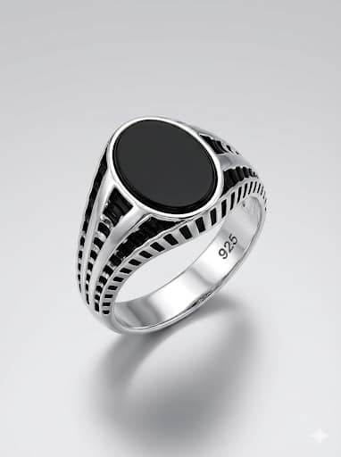 925 Italian Silver Men's Ring with Oval Black Onyx and Modern Ladder Cutout Design925 Italian Silver Men’s Ring with Oval Black Onyx & Modern Ladder Cutout Design