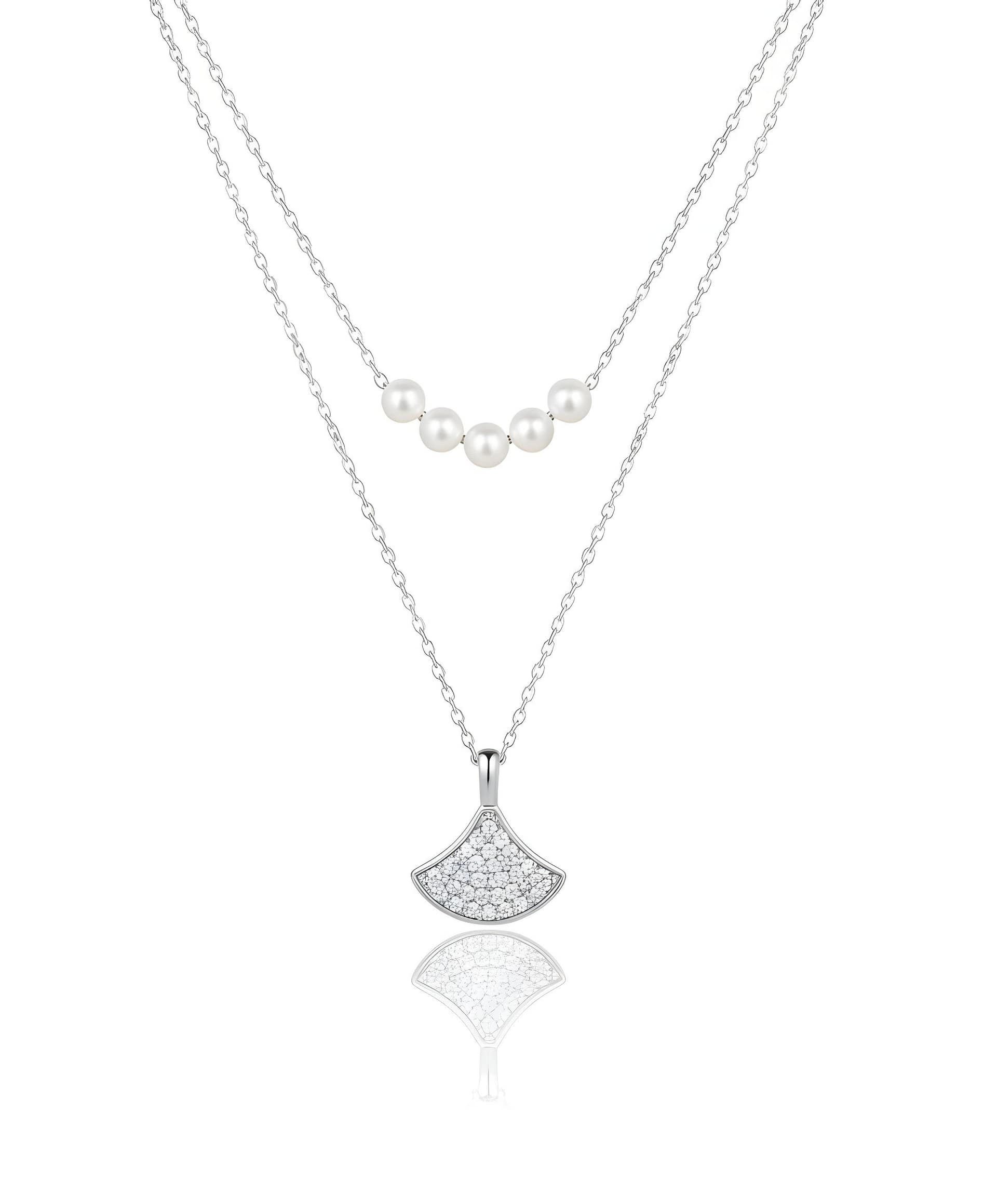 925 Sterling Silver Double Layer Pearl Necklace with Fan Pendant