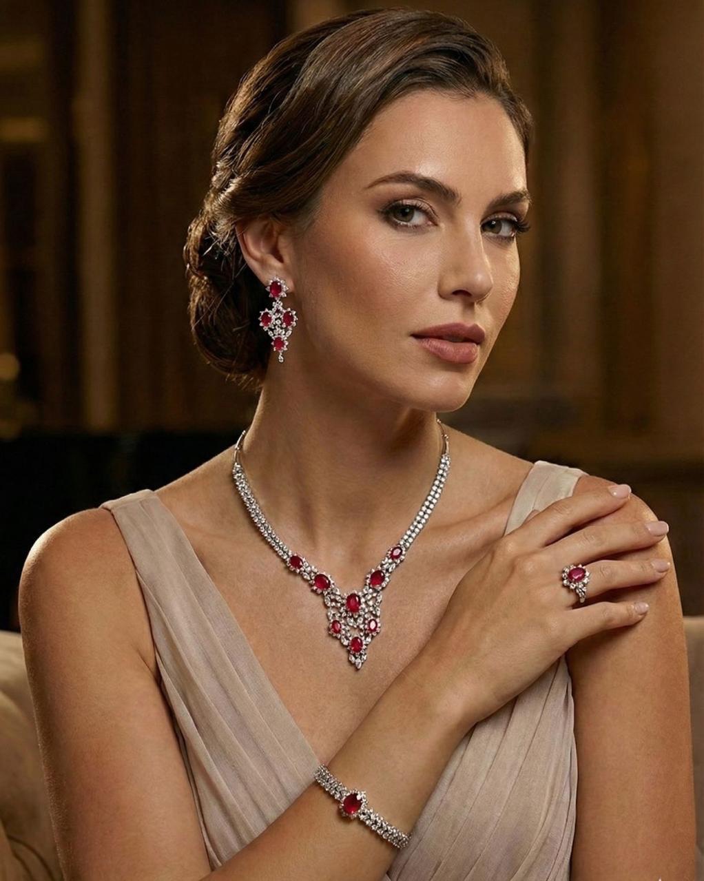 Be the first to review “Elegant 74g Rhodium Plated 925 Italian Silver Jewellery Set with Ruby Red Stones”