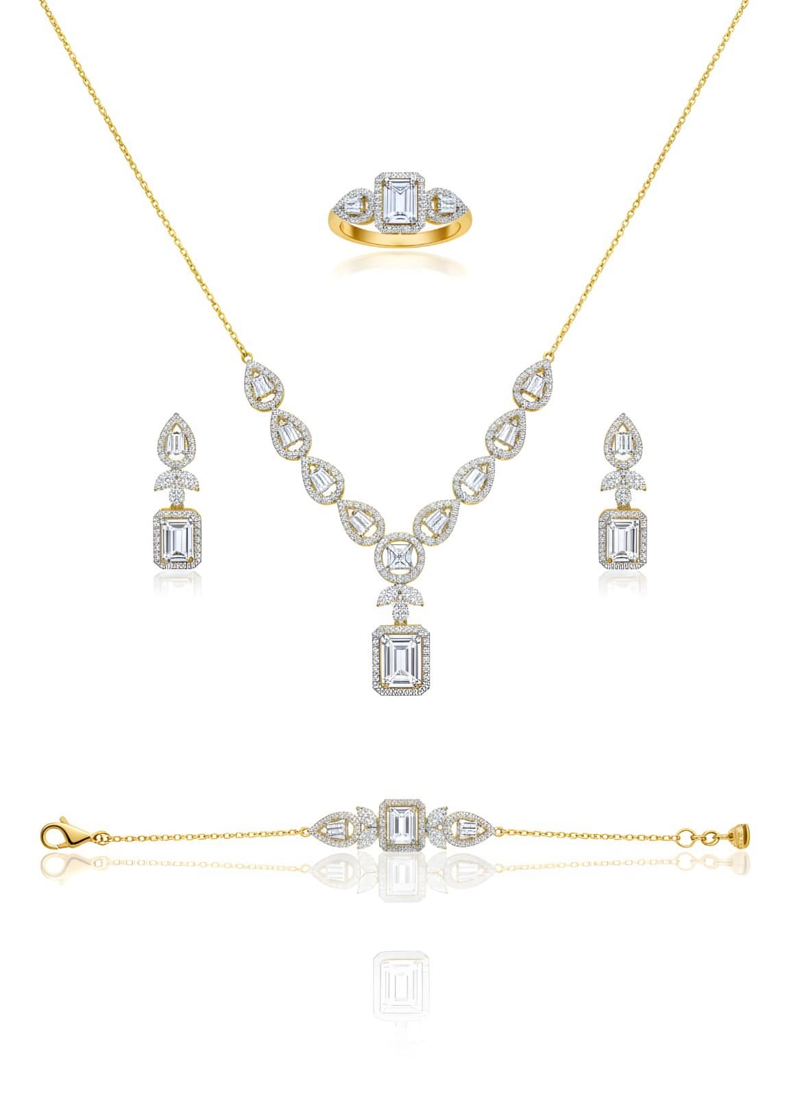 • Components: Includes 1 Necklace, 1 Pair of Earrings, 1 Bracelet, and 1 Ring.