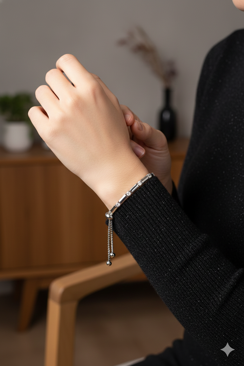 • 👌 Adjustable Bolo Clasp: Designed with a modern and convenient slider mechanism on a durable box chain. This allows for instant, easy adjustment to achieve a perfect, secure fit for almost any wrist size.