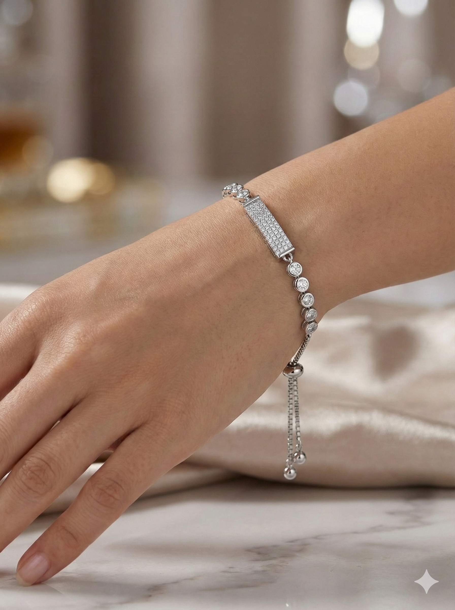 • 👌 Adjustable Bolo Clasp: Designed with a modern and convenient slider (bolo) mechanism on a sleek box chain. This allows for easy, instant adjustment to achieve the perfect, secure fit for almost any wrist size.
